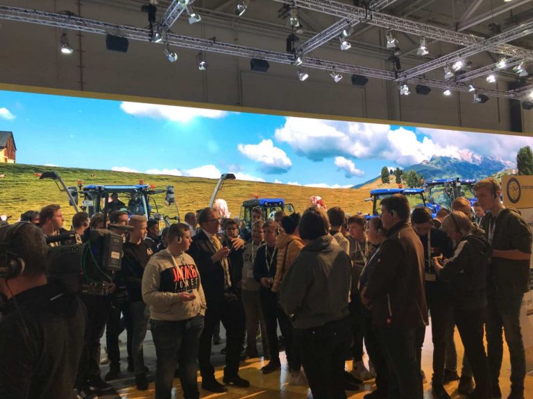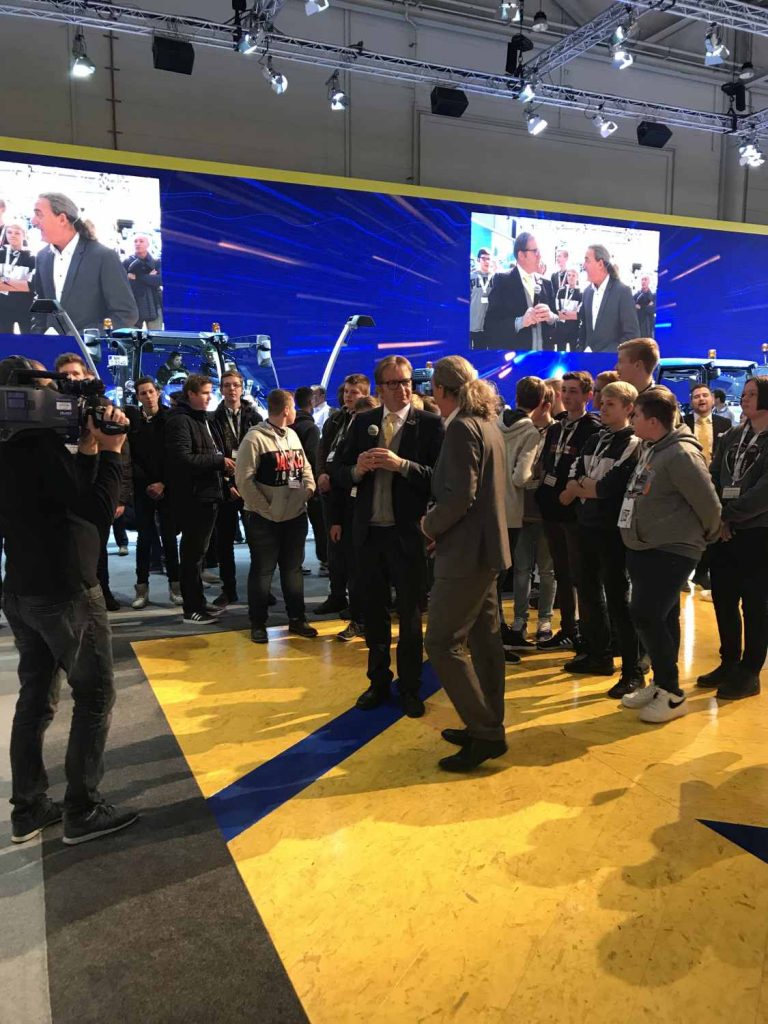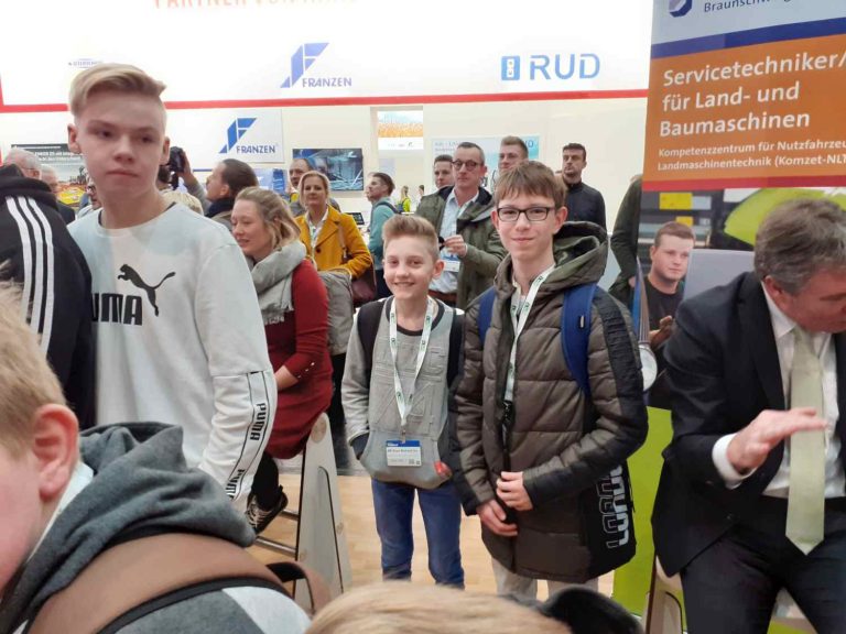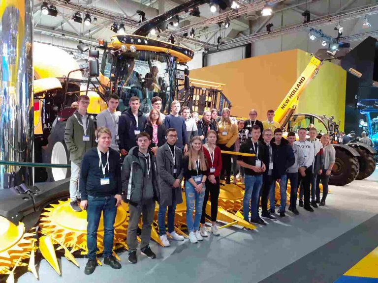 Anschließend erhielten die Schülerinnen und Schüler eine sehr exklusive, informative und beeindruckende Führung auf dem Messestand des Herstellers New Holland, der langjährigen Partner der Firma Bruns ist. Nach der Führung gab Gelegenheit im Metting Room Fragen zur Ausbildung und zur Firmengeschichte zu stellen. Im Anschluss daran durften die Schülerinnen und Schüler auf eigener Faust die Agritechnica erkunden bis es dann gegen Abend mit vollgepackten Tüten wieder nach Hause ging. Es war ein ganz eindrucksvoller Tag für alle Beteiligten mit großen Chancen sich über Ausbildungsmöglichkeiten zu erkundigen und das Arbeitsfeld Landtechnik zu erleben. Wir bedanken uns riesig für diesen tollen Tag bei der Firma August Bruns Cloppenburg für die Einladung und die gelungene Organisation!