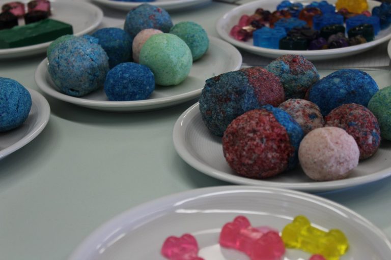 Beim Projekt zu nachhaltigen Pflegeprodukten wurde besonders darauf geachtet, Produkte ohne Mikroplastik herzustellen. Diese sind in der Kosmetik nämlich ein großes Problem. Die Produkte der Schülerinnen und Schüler gelten als nachhaltig, da sie sie selbst hergestellt haben und somit wissen, aus welchen Inhaltsstoffen sie bestehen. Oftmals enthalten Pflegeprodukte, die in großen Fabriken hergestellt werden, Mikroplastik oder sogar schädlichen Stoffe, welche den Menschen auf Dauer schaden können. Die Schülerinnen und Schüler konnten selbst Seifen und Badebomben herstellen. Sie bekamen von Frau Moorbeck und Frau Becker Vorgaben, wie das Mischungsverhältnis der Zutaten sein muss und konnten ab dann selbst wählen, wie sie ihre Seifen und Badebomben gestalten. Sie konnten sich die Farben und Düfte der Produkte aussuchen und sich ausprobieren. Einige von ihnen berichteten darüber, dass es sehr viel Spaß machte die Pflegeprodukte herzustellen und es eine gute Alternative zu den Industrieprodukten sei. Zudem gaben viele der Projektteilnehmer und -teilnehmerinnen an, sich auch weiterhin an Pflegeprodukten ausprobieren zu wollen, da sie ja nun wissen wie es geht.