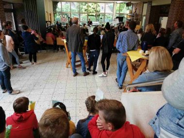 Im Anschluss an die Feier begaben sich alle Neuankömmlinge mit ihren Klassenlehrerinnen Frau Nicole Dockmann (5a) und Frau Stefanie Bolte (5b) in ihren jeweiligen Klassenraum um sich näher kennen zu lernen. Begleitet wurden sie von den Klassenpaten. Die Eltern hatten in der Pausenhalle ebenfalls die Gelegenheit sich bei einem Kaffee kennen zu lernen und auszutauschen.