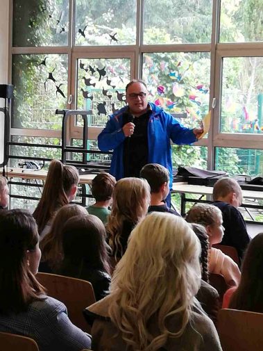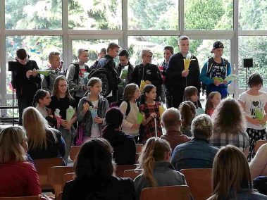 Aus dem Jahrgang 9 begrüßten die Klassenpaten die Neuen und stellten sich einzeln vor. Die Klassenpaten begleiten die Schülerinnen und Schüler der 5. Klassen in der ersten Zeit beim Kennenlernen, Zurechtfinden und auch bei Schwierigkeiten.