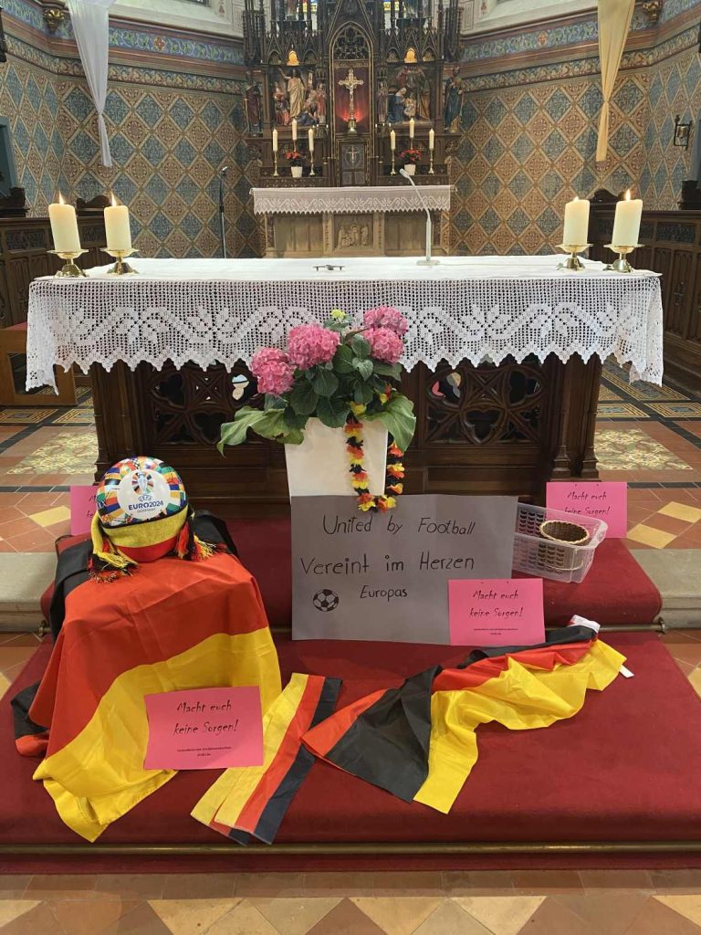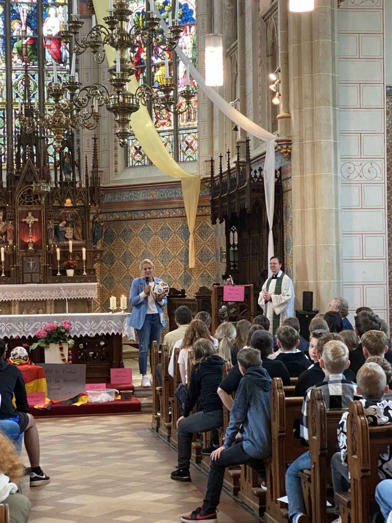 Der gemeinsame Schuljahres-Abschlussgottesdienst fand unter dem Motto „Macht euch keine Sorgen“ statt und verband den Schulalltag mit der Europameisterschaft im Fußball, die aktuell stattfindet.