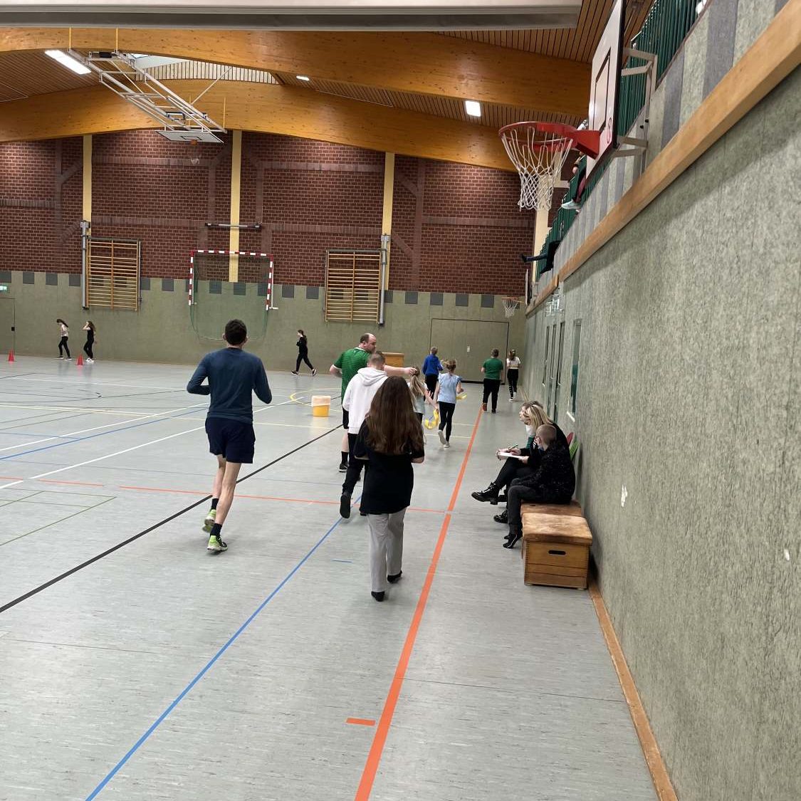 Am Montag, den 21.02.2022 liefen die Jahrgänge 5 und 6 ihre Runden in der Sporthalle, da aufgrund des Wetters das Laufen draußen unmöglich war. Die anderen Jahrgänge machten sich am Mittwoch bei strahlendem Sonnenschein draußen auf den Weg, um ihre Kilometer zu schaffen.