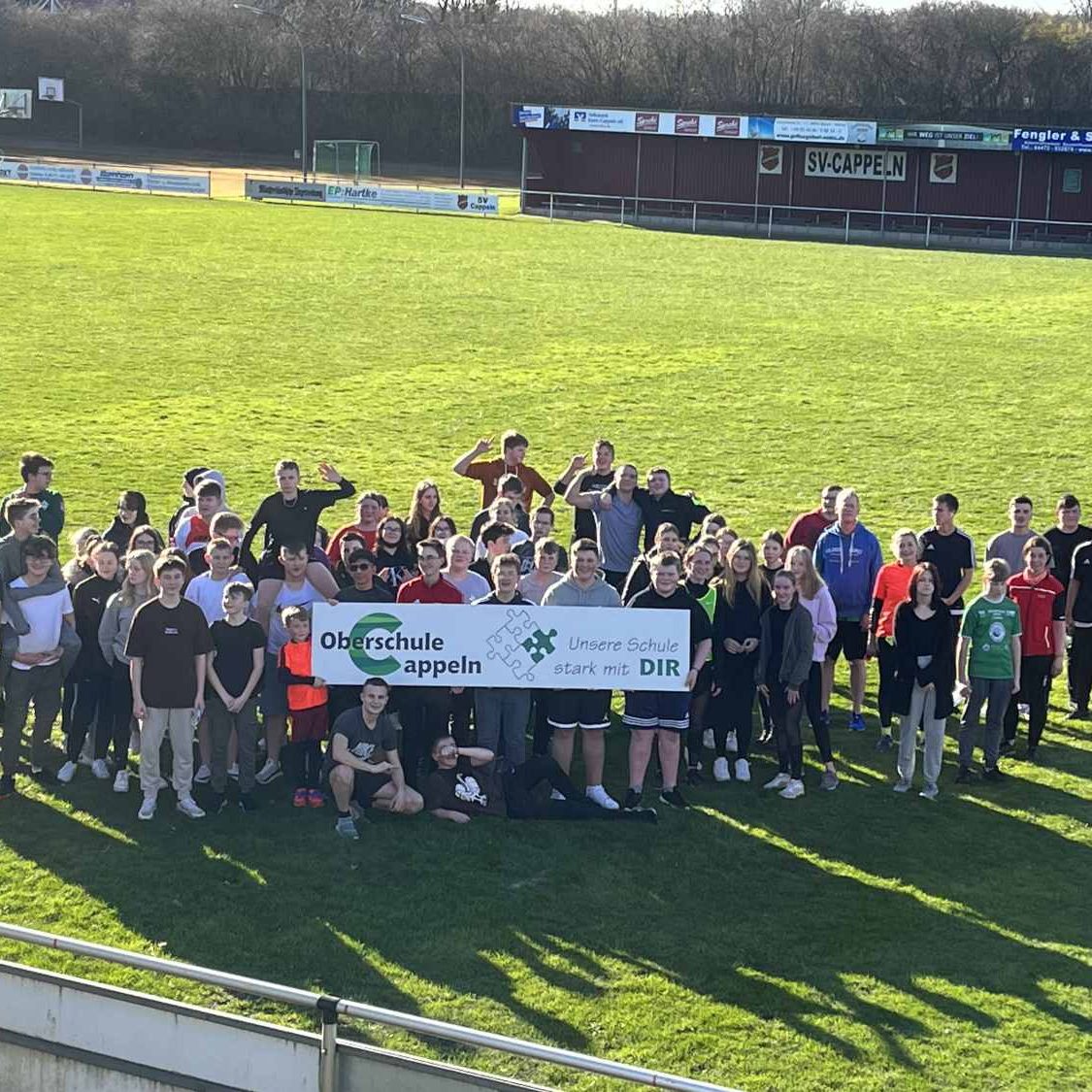 Die Schülerinnen und Schüler sowie viele Lehrkräfte der Oberschule Cappeln unterstützten in der Woche vom 21.02.2022 bis 25.02.2022 den vom Sportverein Cappeln organisierten Spendenlauf „Wir laufen für Fabio!“ Fabio Nilling aus Cappeln benötigt dringend eine Stammzellenspende. Er leidet an einer seltenen Knochenmarkerkrankung, die unter einer Million Menschen nur ein- bis zweimal vorkommt, die aplastische Anämie. Mit dem Spenden aus der Aktion soll die DKMS bei der Registrierung und Suche nach Spendern auch für weitere Erkrankte unterstützt werden.